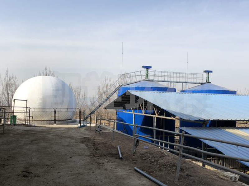 雙層膜沼氣罐外型為3/4球體,由鋼軌固定于水泥基座或厭氧罐罐頂上。主體由特殊加工聚酯材質制成,罐體由外膜、內膜、底膜(地上柜)及附屬設備組成,具有抗紫外線及種微生物的能力,高度防火并符合標準。